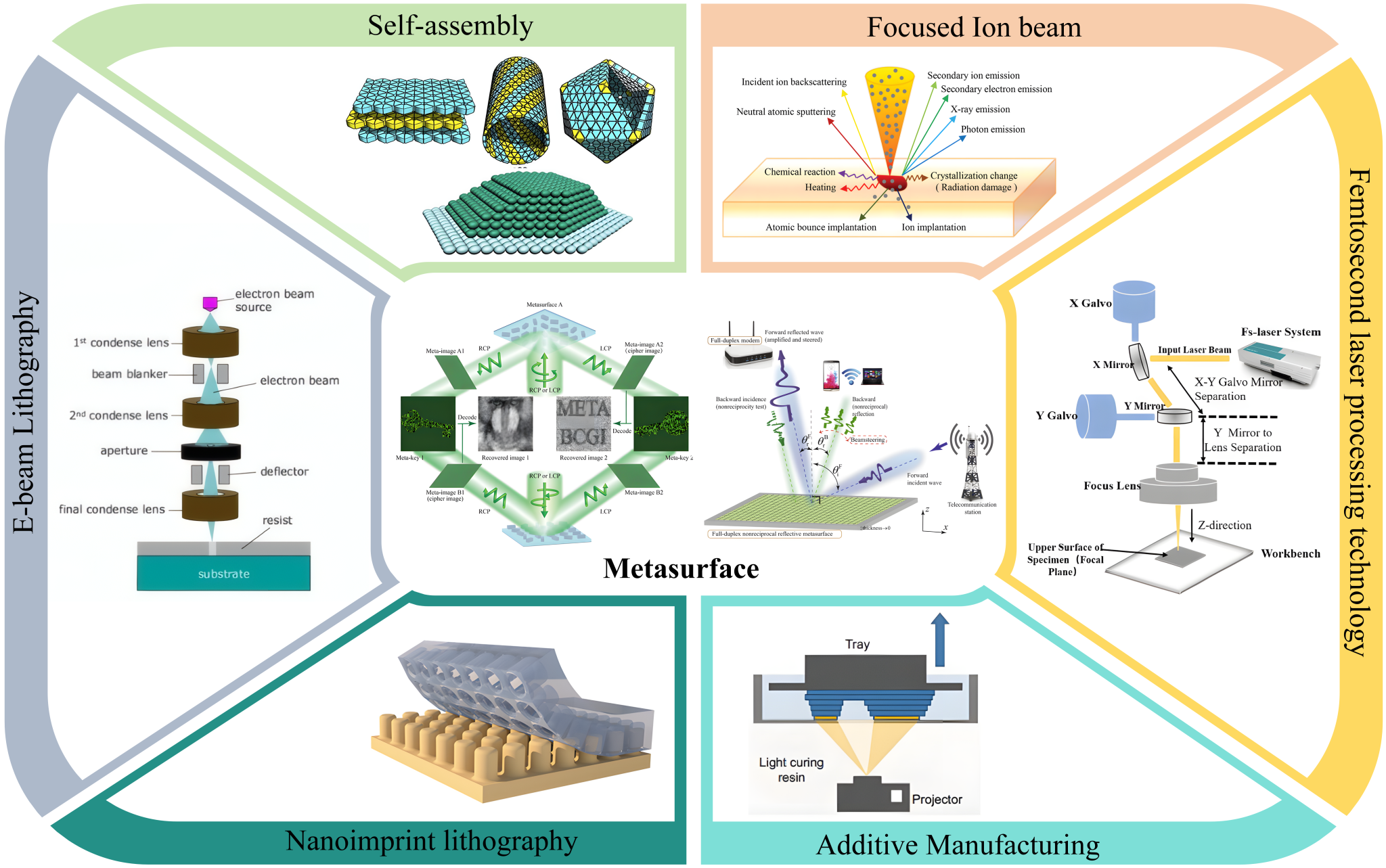 随着光子学技术的快速发展,超表面(metasurface)作为突破传统光学元件尺寸限制的革命性人工复合材料,在通信、成像、传感等前沿领域展现出巨大应用潜力。其通过精准设计的微纳结构实现对光场振幅、相位、偏振态及频率的灵活调控,加工技术的突破是解锁其应用潜能的关键所在。该成果不仅为新型光电子器件研发提供了系统性的技术路线图,更为微纳制造领域的跨尺度集成难题提出了创新解决方案,对推动光学超表面从实验室研究走向产业化应用具有重要指导意义。