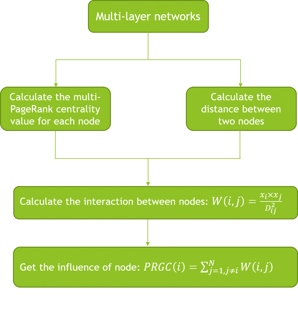 研究成果《An improved gravity centrality for finding important nodes in multi-layer networks based on multi-PageRank》针对多层网络关键节点识别问题,定义一种基于PageRank的重力中心性。所提中心性方法将节点的多重PageRank值视为其重量。此外,所提中心性算法对网络层中任意两个节点间的最短路径距离进行了加权,进而定义节点间在网络中的距离。