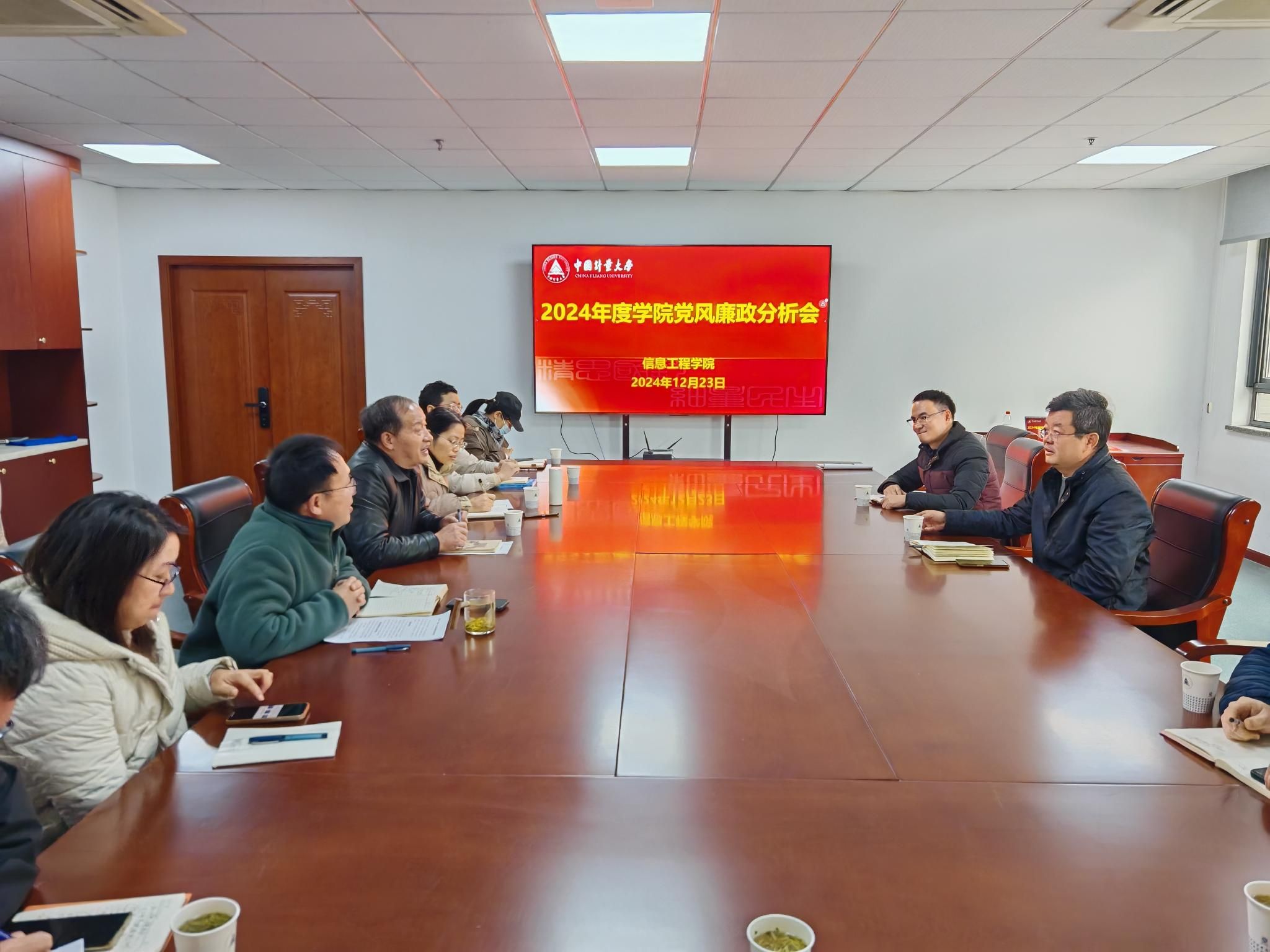 为深入学习贯彻党的二十大和二十届三中全会精神,压紧压实全面从严治党政治责任,纵深推进党风廉政建设和反腐败工作,2024年12月23日上午,信息工程学院党委于博雅南楼404会议室召开2024年党风廉政建设分析会。副校长王迪钊到会指导,会议由学院党委书记郑成林主持,学院党政领导班子成员、党委委员、纪委委员、办公室主任和校纪检监察室张向军参加本次会议。
