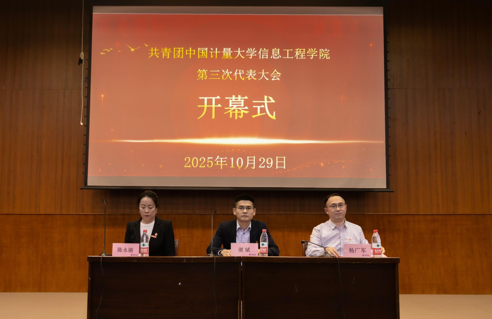 10月29日下午,共青团中国计量大学信息工程学院第三次代表大会在东区KA105报告厅隆重举行,中国计量大学团委常务副书记谢斌,信息工程学院党委副书记杨广军、团委书记陈永丽以及各兄弟学院团委副书记应邀参加大会。