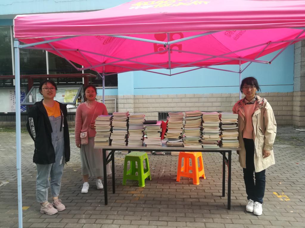 上午10点开始,活动场地布置好之后,党支部党员、入党积极分子按照值班表准时到场值班。大家责任清晰,分工明确,将所回收到的旧书籍按照课本、杂志等进行了分类整理。参与活动组织的周恩杰同学深有感触,