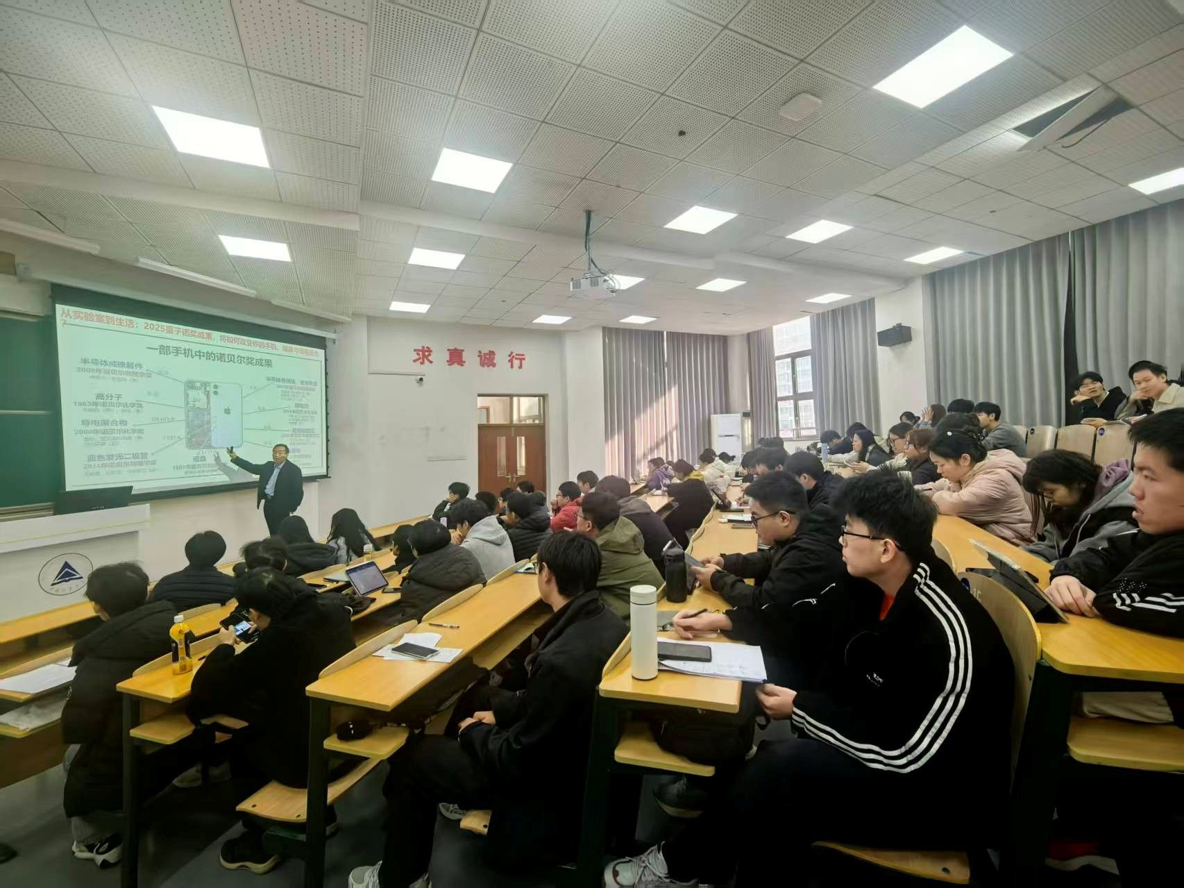2025年12月4日,信息学院邀请浙江大学李尔平院士为研究生课程《信息与通信工程学科前沿》授课。李院士以“2025诺奖启迪对电子信息未来发展思考”为题,为同学们带来了一堂精彩生动的前沿讲座。研究生全体到场聆听,课堂气氛热烈,互动积极。
