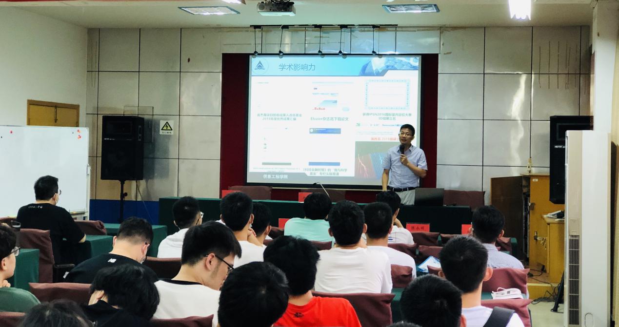 周院长以“研究生如何做好科研工作”为主题进行讲座。首先,周院长向我院2020级研究生新生介绍了信息工程学院的学位点,主要包括师资力量、近几年重大基础性科研项目、国家级纵向项目、科技成果转化与获奖、近三年论文论著与专利以及学术影响力等方面的内容。其次,周院长就认清专业方向,通过规划和学习提高各种能力、合理分配时间、做好科研实验、总结经验教训这五个方面系统地阐述了研究生如何做好科研工作。最后,周院长向同学们提出了几点忠告,并送上了真挚的祝福和寄语。