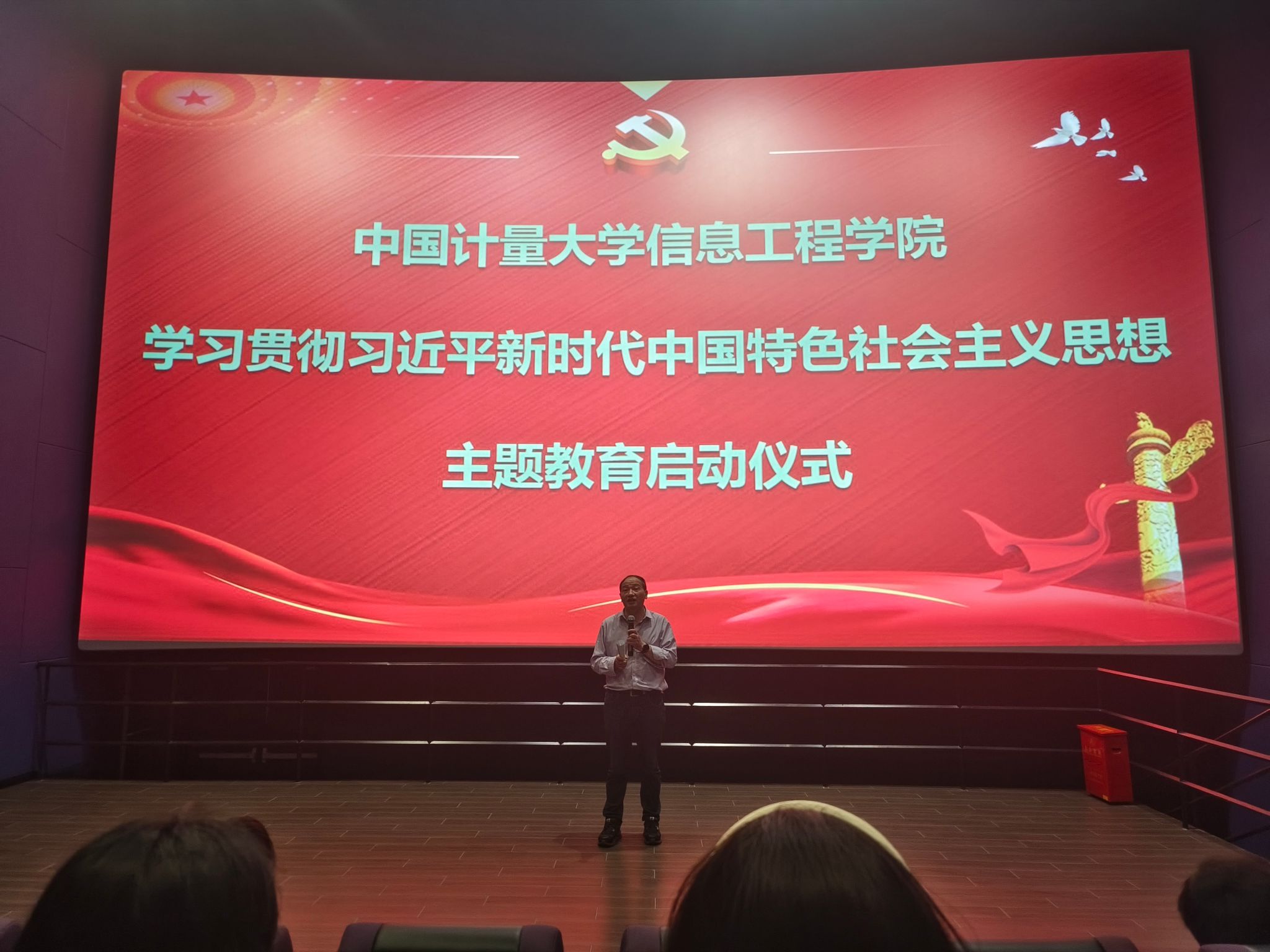2023年4月19日中午,信息工程学院举行学习贯彻习近平新时代中国特色社会主义思想主题教育启动仪式暨红色观影。学院党委书记郑成林出席仪式并讲话,学院党委副书记杨广军向与会教工、学生党员赠书。教工行政党支部党员、学院学生党员代表、积极分子代表、全体学生党支部书记等100余人参加启动仪式。