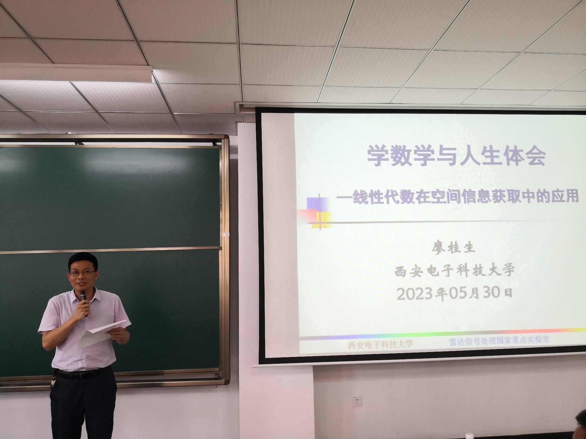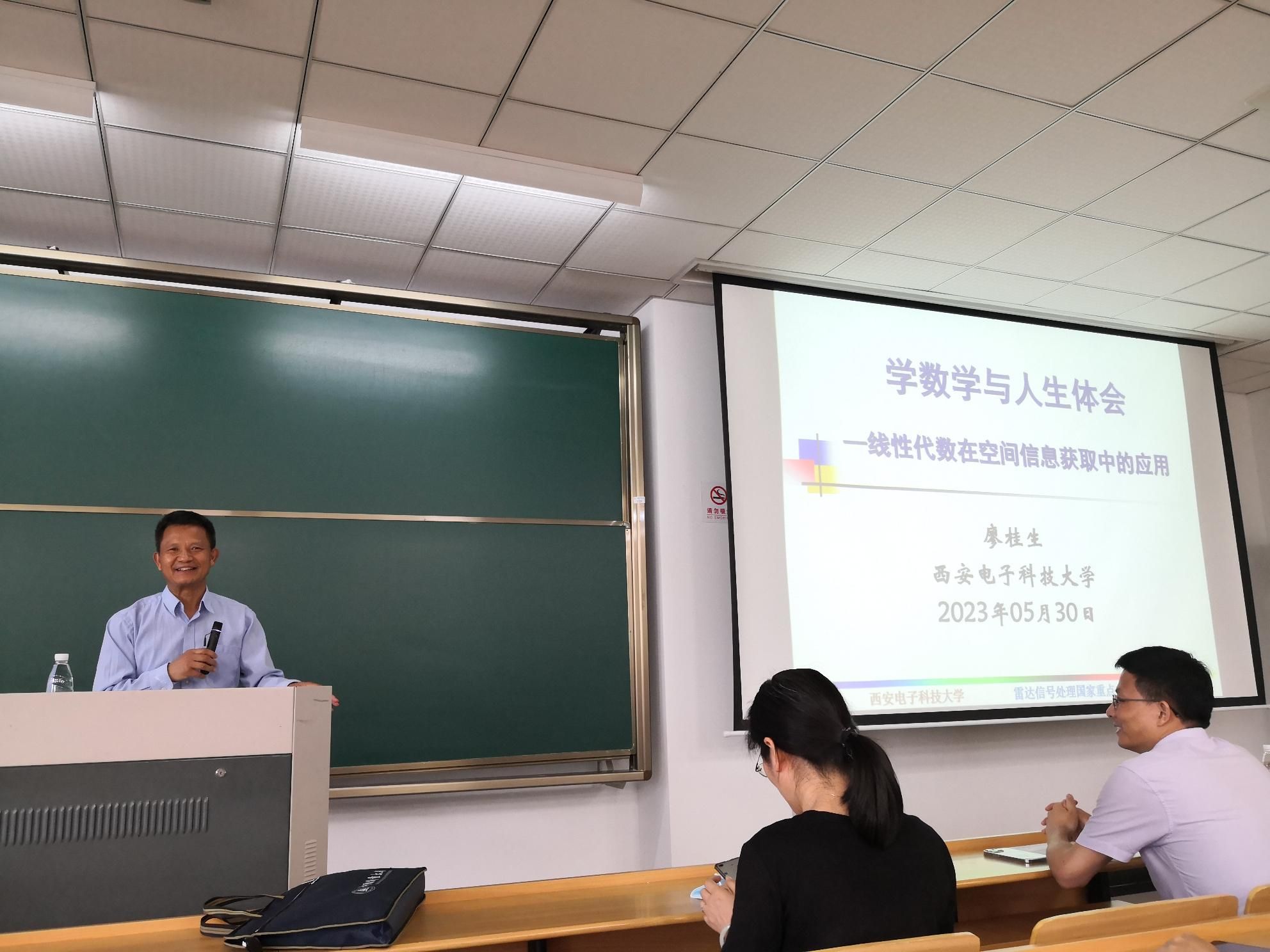 为深入推进开展学习贯彻习近平新时代中国特色社会主义思想主题教育,加强学科建设、提升人才培养质量和促进产学研合作,信息工程学院于5月30日下午邀请西安电子科技大学、西安电子科技大学杭州研究院院长廖桂生教授为学院师生作题为《学数学与人生体会——线性代数在空间信息获取中的应用》的学术报告。报告会由信息工程学院院长周浩淼主持,学院副院长赵建伟和师生代表参加本次学术报告会。