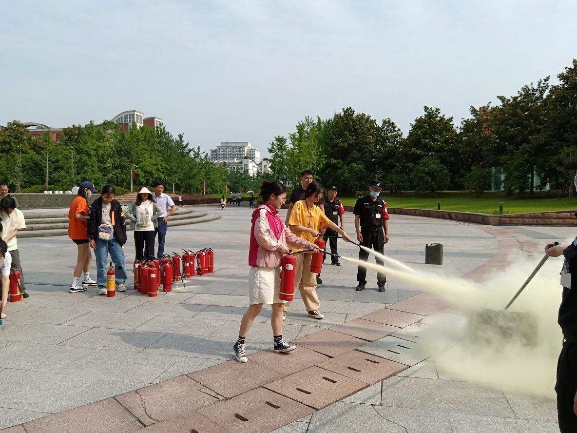 会后,与会师生在院长带领下移步至图书馆西南侧广场进行消防安全演习。演习邀请了校保卫处朱永乐老师进行了消防安全讲解和示范。在朱老师的指导下,师生逐一参与了灭火器的实际操作。