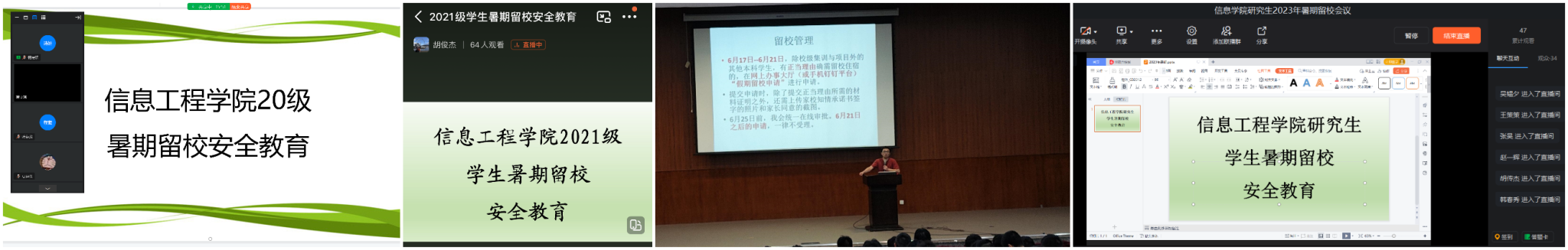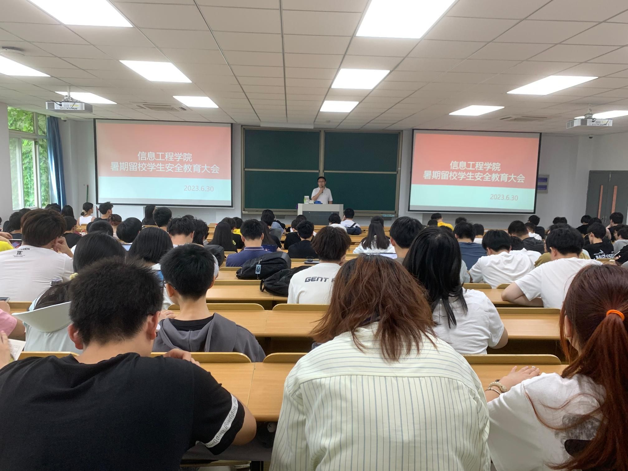 为落实好《关于做好2023年暑期留校学生管理工作的通知》和《关于做好期末及暑假期间校园安全工作的通知》的要求,提高学生安全防范意识,维护校园安全稳定,信息工程学院根据学生暑期校内外学习实践情况,在本学期末分类开展覆盖全体学生的暑期安全教育。