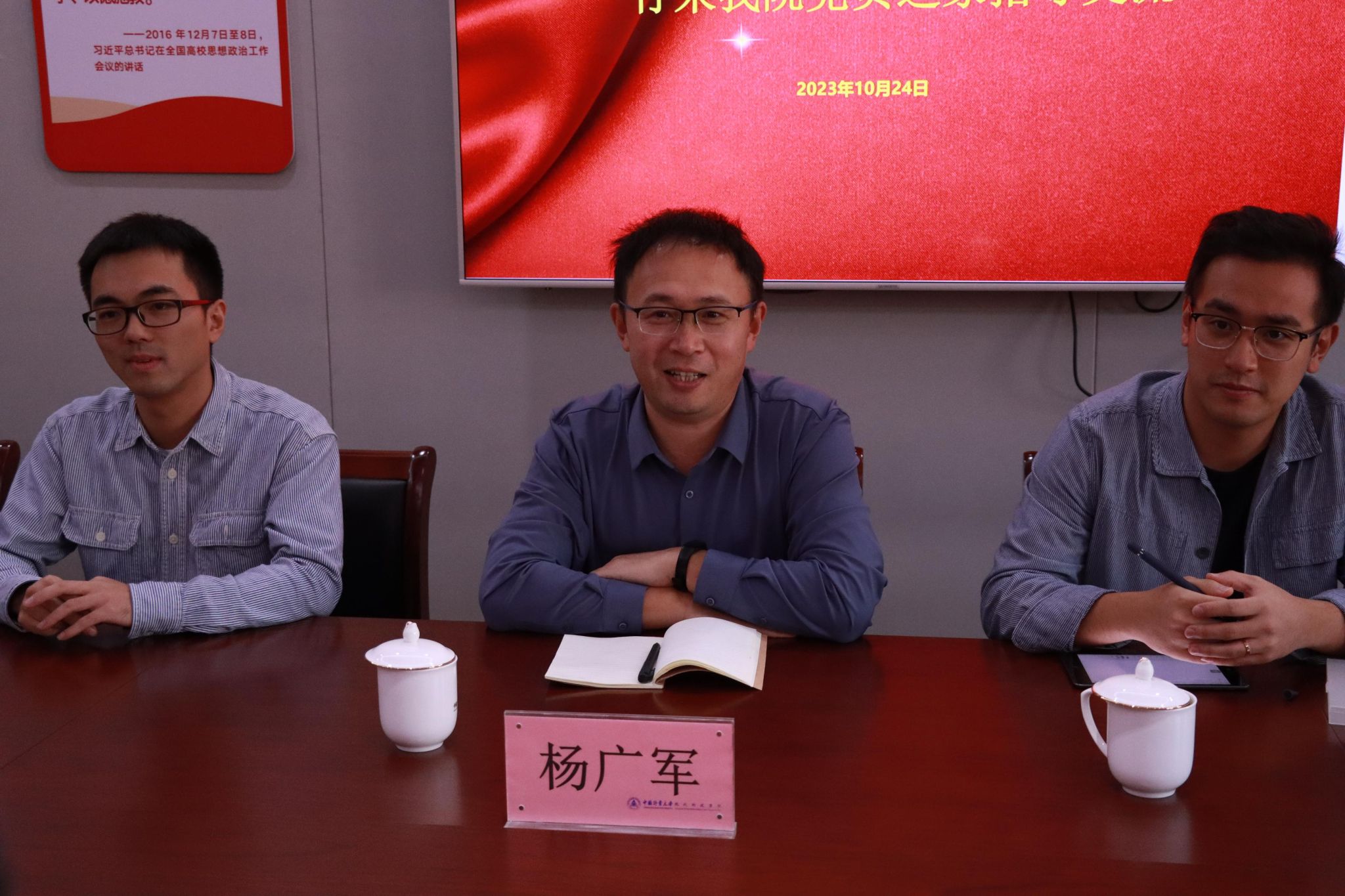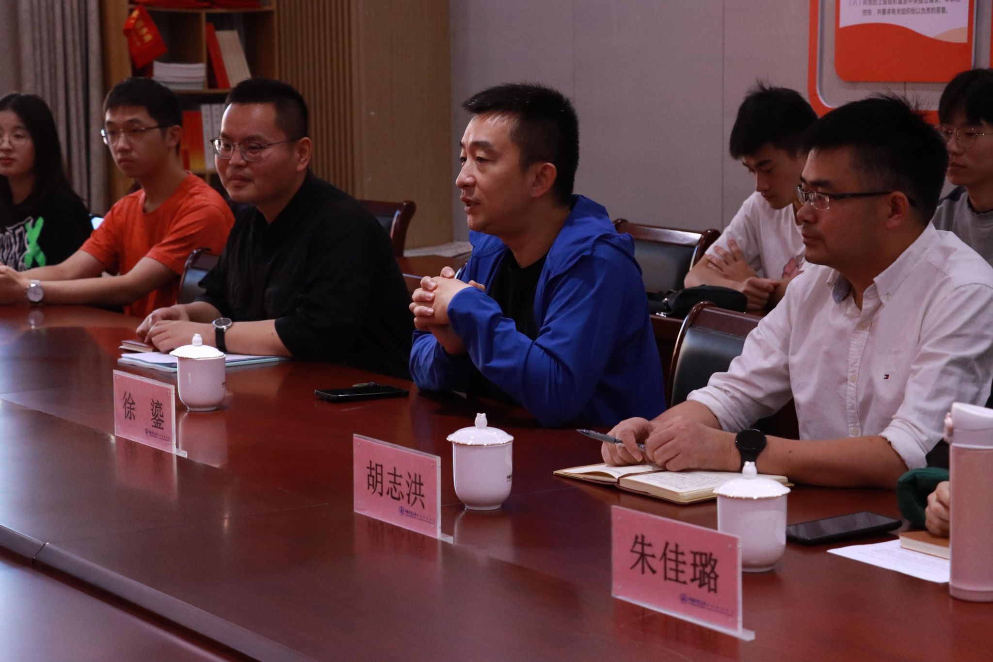 随后,现代科技学院党群工作部副部长马柏义介绍了现代科技学院党建工作特色情况,并与到访的师生就党员发展工作流程、痛点难点、党员之家建设管理、学生党员骨干力量培养等方面进行了深入交流。