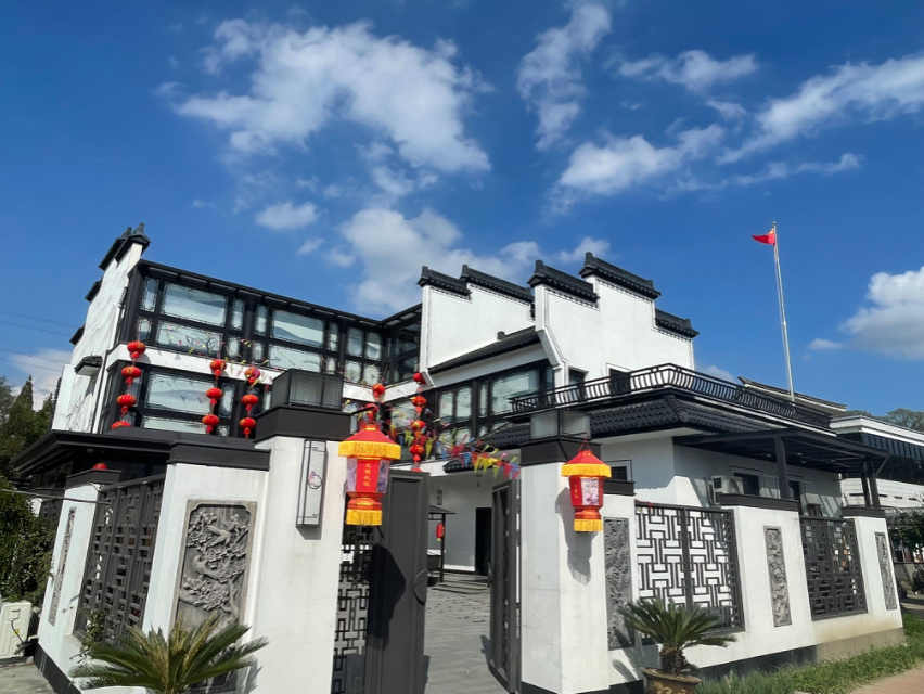 11月04日下午,教工们又来到位于海宁丁桥镇新仓村梁家墩参观与学习。丁桥梁家墩,省级“美丽乡村”建设试点,梁家墩人按照“现居居民保留原状、两新居民回购房屋、空置家庭合约租赁”的分类处理原则,很好的保留了村庄的原生态面貌。整个村庄家家户户庭院整洁,粉墙黛瓦,质朴淡雅,如入水墨之画(图7-9)。村庄内部处处以墙画、微型的宣传板等形式展示村规民约、家风家训及孝文化知识,不仅让居民随时接受潜移默化的教育和影响,同时又充满了浓厚的文化气息。