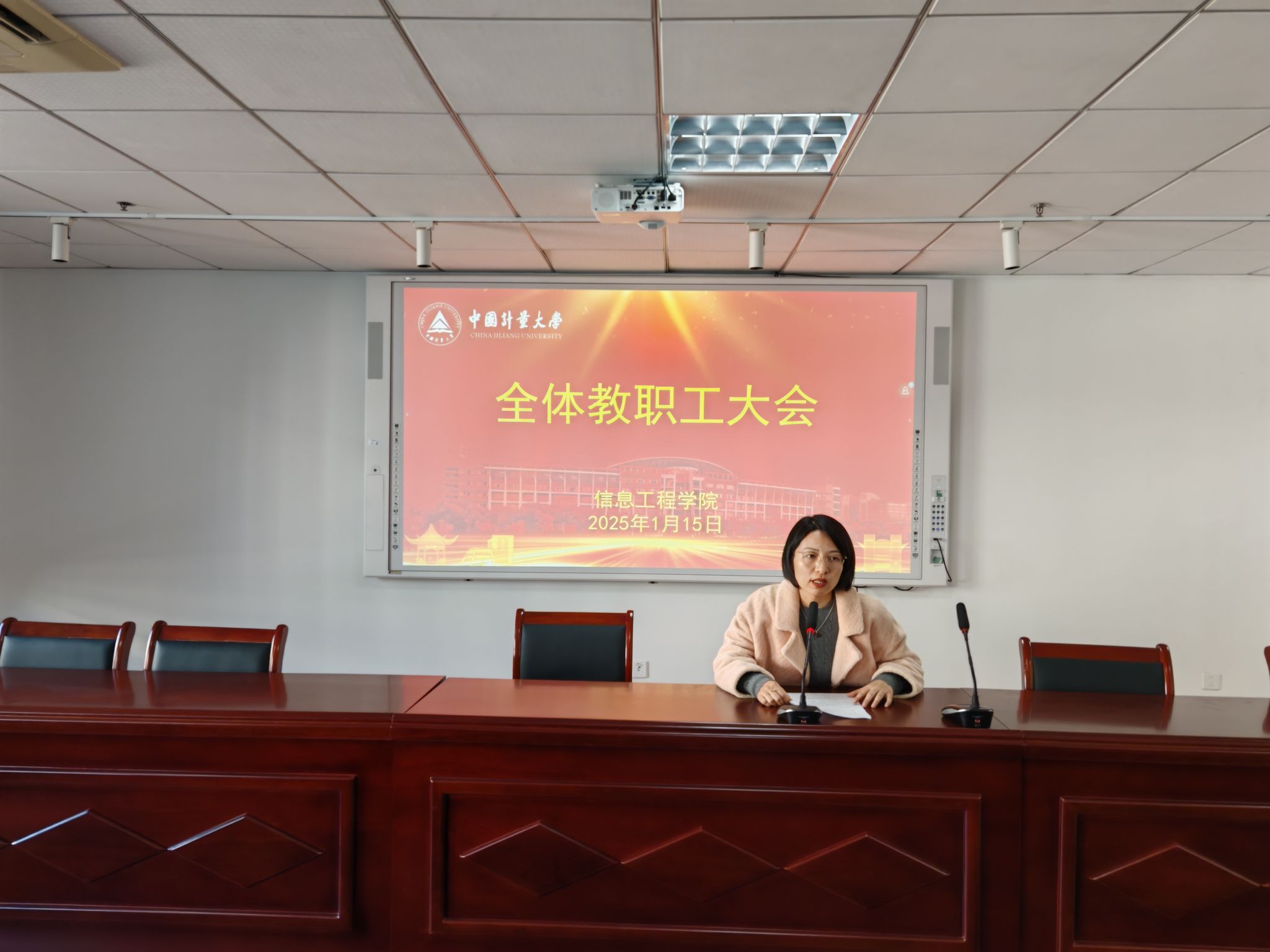 为总结2024年度学院工作,展望2025年发展前景,1月15日下午,信息工程学院在博雅南楼401会议室召开全体教职工大会,学院领导班子成员及全体教职工参会,会议由学院党委书记郑成林主持。