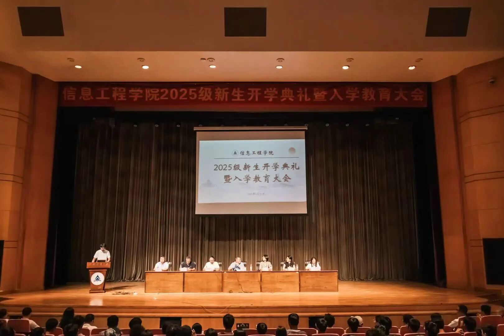 9月17日上午9点,信息工程学院2025级本科新生开学典礼暨入学教育大会在嘉量大会堂举行,学院党政领导、各系(部门)负责人、新生班主任以及2025级600余位本科新生齐聚一堂,共同迎接新学期的开始。